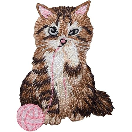 Amazon Com Brown Cat Playing Pink Yarn Ball Pets Kitten Embroidered Iron On Patch Kitchen Dining