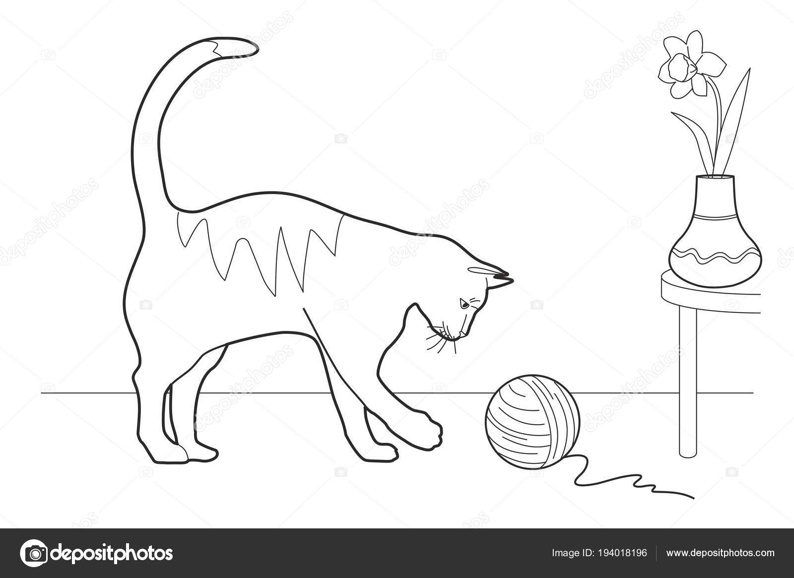 Coloring Page Outline Of Cat Playing With Ball Of Yarn Stock Vector Illustration Of Line Ball 66352561