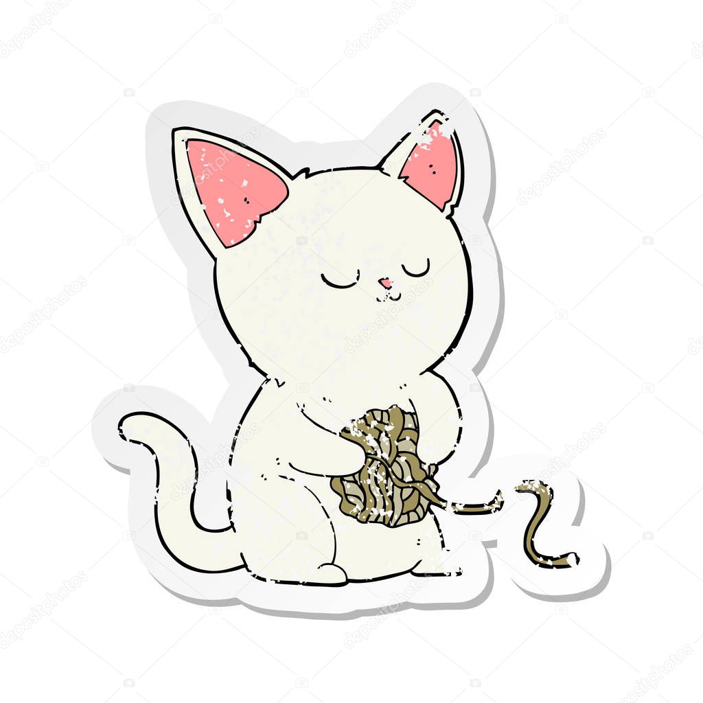 Retro Distressed Sticker Of A Cartoon Cat Playing With Ball Of Yarn Premium Vector In Adobe Illustrator Ai Ai Format Encapsulated Postscript Eps Eps Format